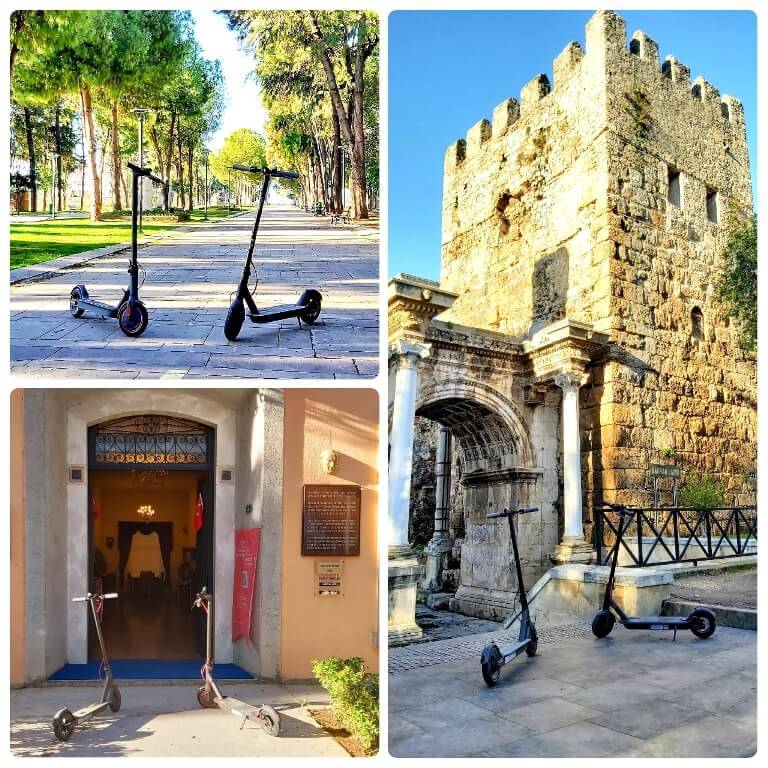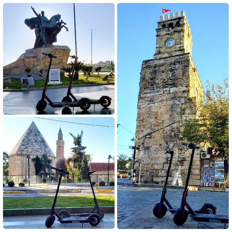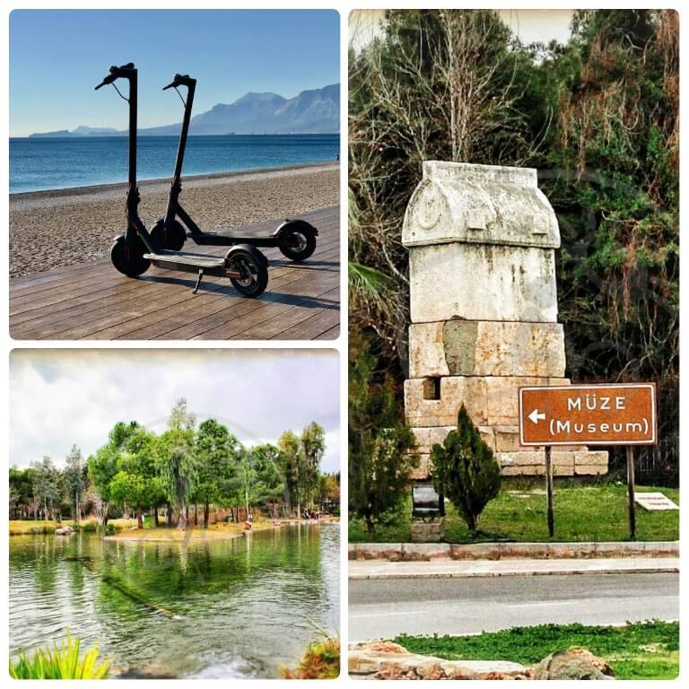 E- Scooter : Konyaaltı Sahilinden başlamayıp, Karaalioğlu parkında sonlanmaktadır.Tur esnasında tercihen 4 farklı dilde, Audi(sesli anlatım) dinletisi yapılarak, 20 farklı noktanın tarihi ve kültürel tanıtımı yapılmaktadır.Turumuz yaklaşık 3 saat sürmektedir.