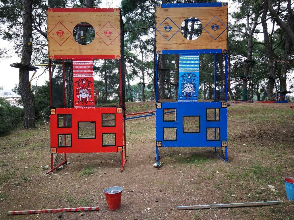 Amaç : Takımlar kendi hedef alanında ki masaların üzerinde bulunan hedefleri, Dev sapan ile vurmaya çalışır. 3 atış sonunda en çok hedefi düşüren takım Puan kazanır,