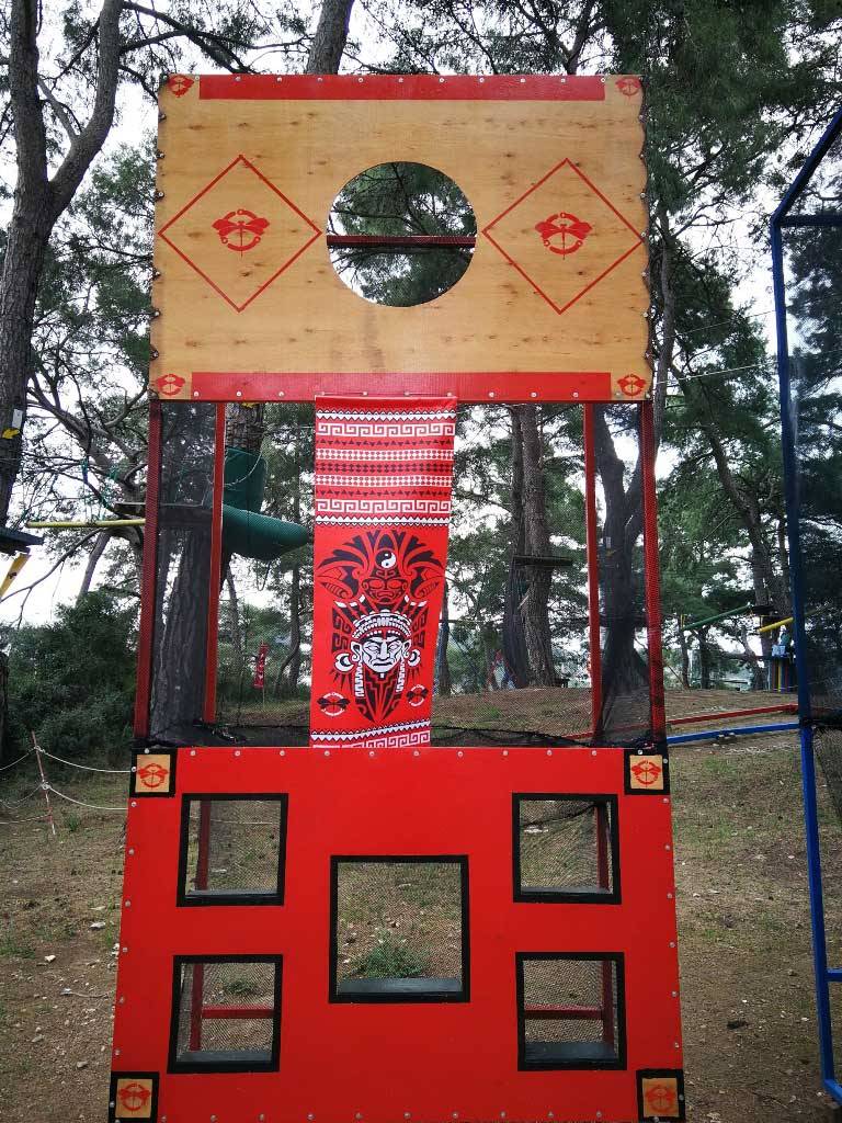 Amaç : Takımlardan 1 oyuncu platforma yerleşir, diğer yarışmacılar 6 -8 ’er kişilik ekipler halinde, yönlendirme iplerini kullanırlar, ekip liderleri yön komutası verir. Platformda bulunan oyuncuyu yönlendirerek, 10 adet kırmızı çubuğu yerinden sökmeye ve deliklere yerleştirmeye çalışırlar.