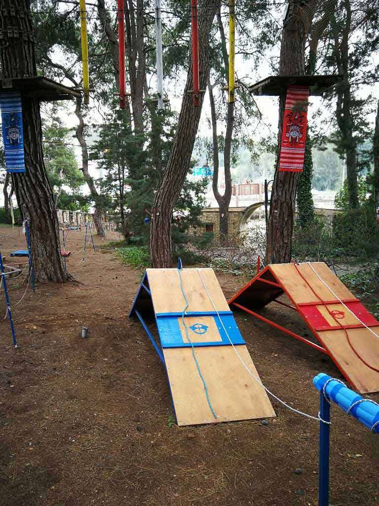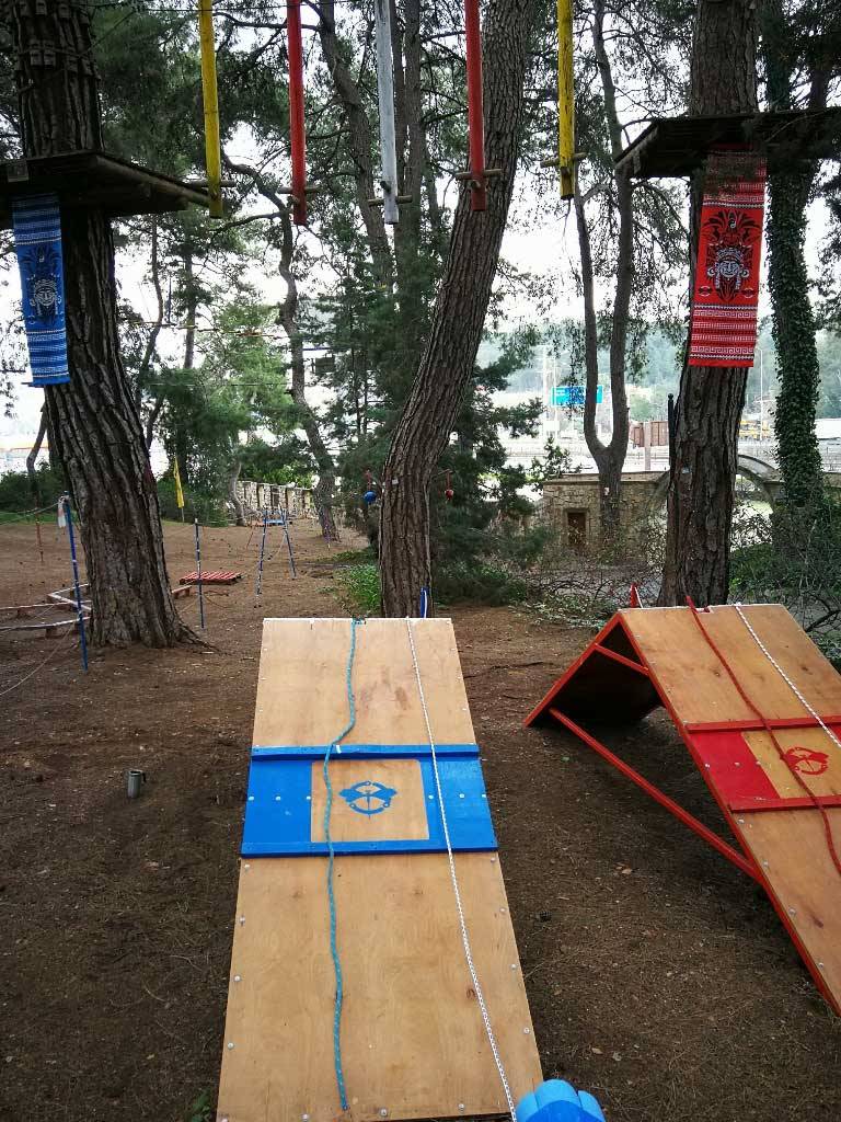 Amaç : Yarışmacılar kendi renklerindeki engeller olan , Denge köprüsü, farklı yönlerdeki (zikzak) atlama ve eğilme engellerini , ip duvarını, diğer engelleri ve tahterevalliyi aştıktan sonra , kovaları zemine değdirerek / Tangram yaparak puan kazanır.